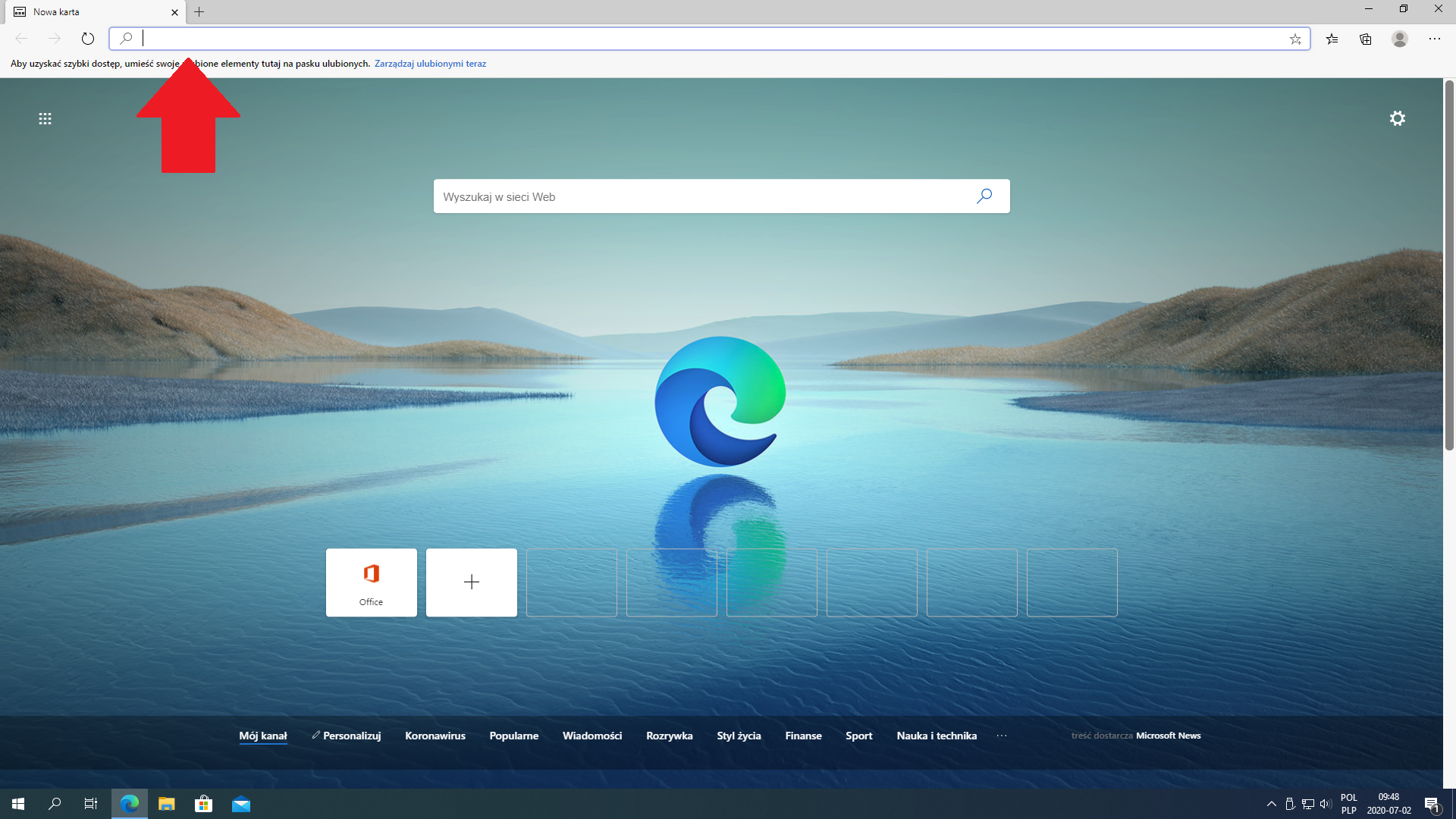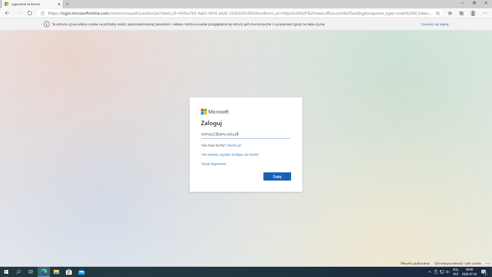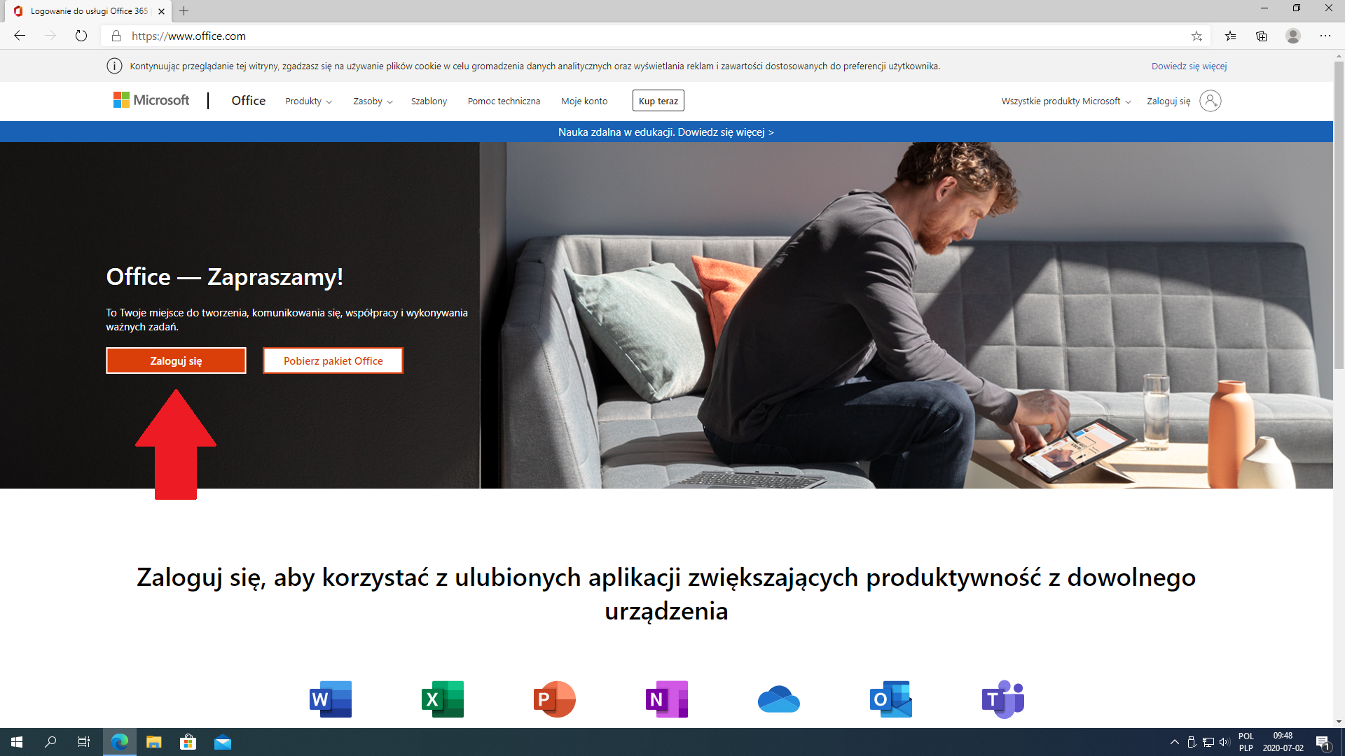 W pasku adresu przeglądarki wpisujemy adres "office.com"