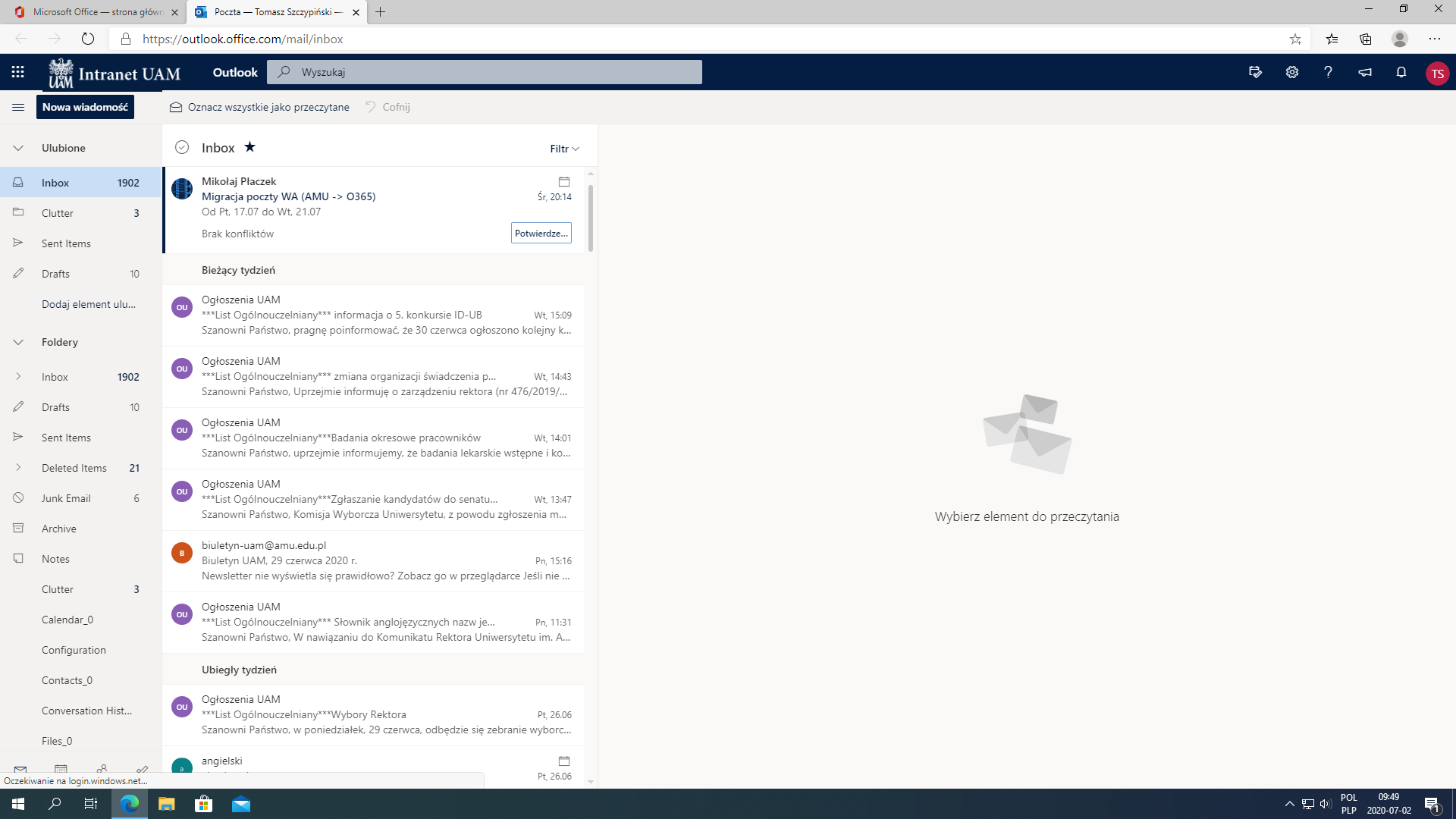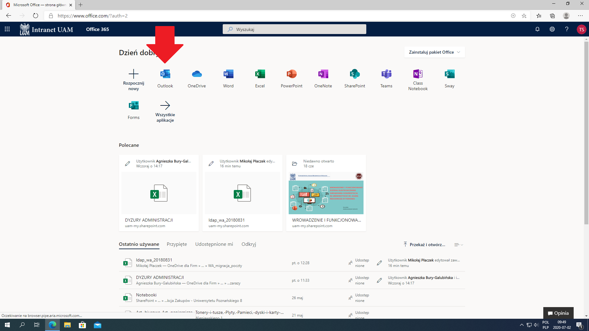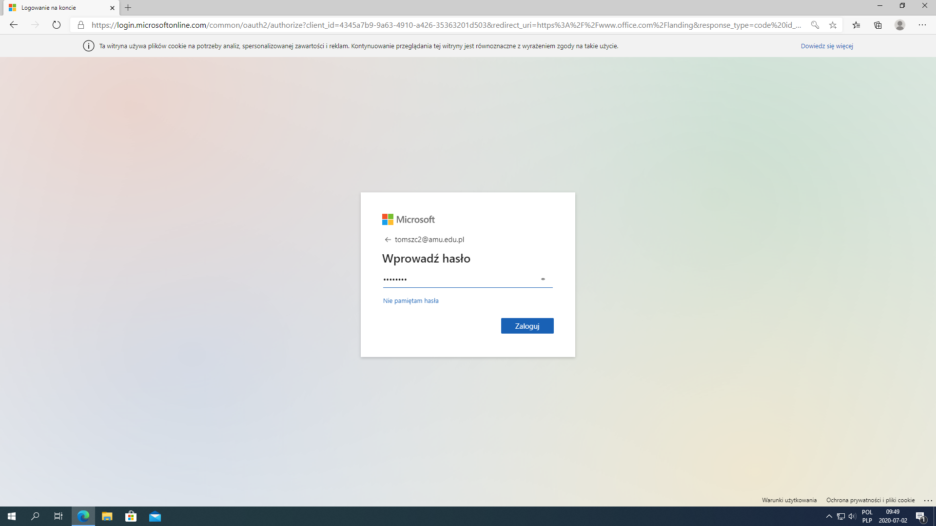 W pasku adresu przeglądarki wpisujemy adres "office.com"