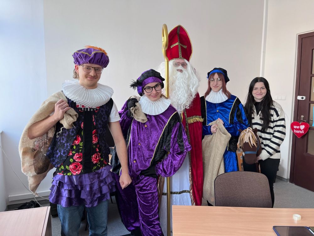 W dniu 5 grudnia na naszej uczelni odbyło się wyjątkowe wydarzenie o nazwie Sinterklaas. Dzień rozpoczął się wraz z przemarszem Sinterklaasa, który dumnie przewodził orszakowi w towarzystwie swojego wiernego konia oraz barwnie ubranych Piety.