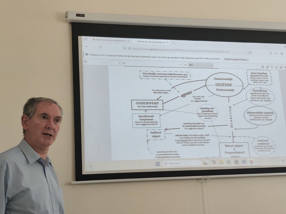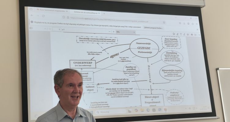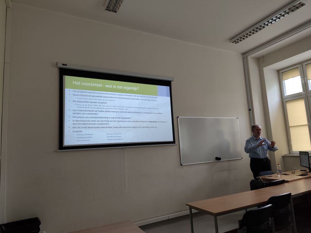 Prof. Engelbrecht wygłosił dla studentów niderlandystyki serię wykładów o bardzo zróżnicowanej tematyce: od historii PEN klubu i transferu literatury niderlandzkiej do Czech i Polski, przez relacje czeskich podróżników z wizyt w Niderlandach, po niderlandzkich artystów aktywnych w Europie Centralnej i tematykę językoznawczą w porównawczym ujęciu niderlandzko-czesko-polskim.